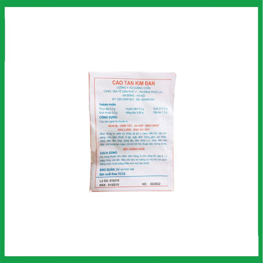 Cao Tan Kim Đan được bào chế dưới dạng cao dán, mỗi miếng dán chứa 1,5g cao dán. Một gói cao dán hút mủ Cao Tan Kim Đan chứa 2 miếng dán.