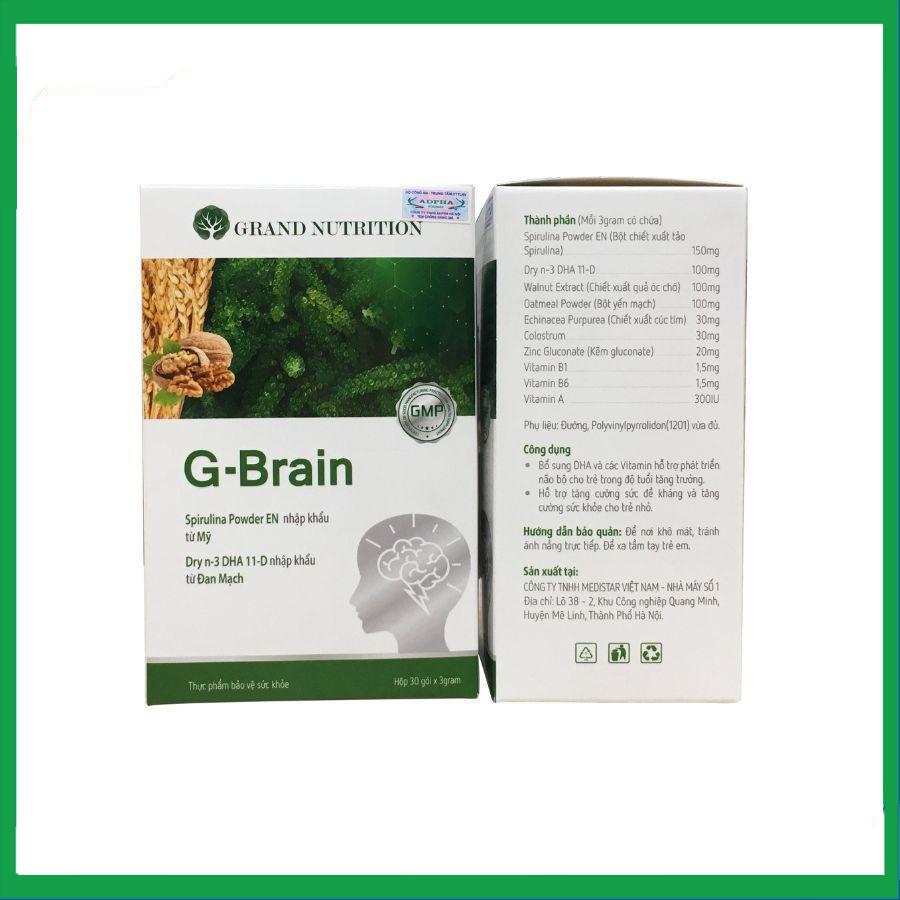Cốm Trí Não G-Brain 3g Grand Nutrition bổ sung DHA và các vitamin hỗ trợ phát triển não bộ cho trẻ (30 gói)