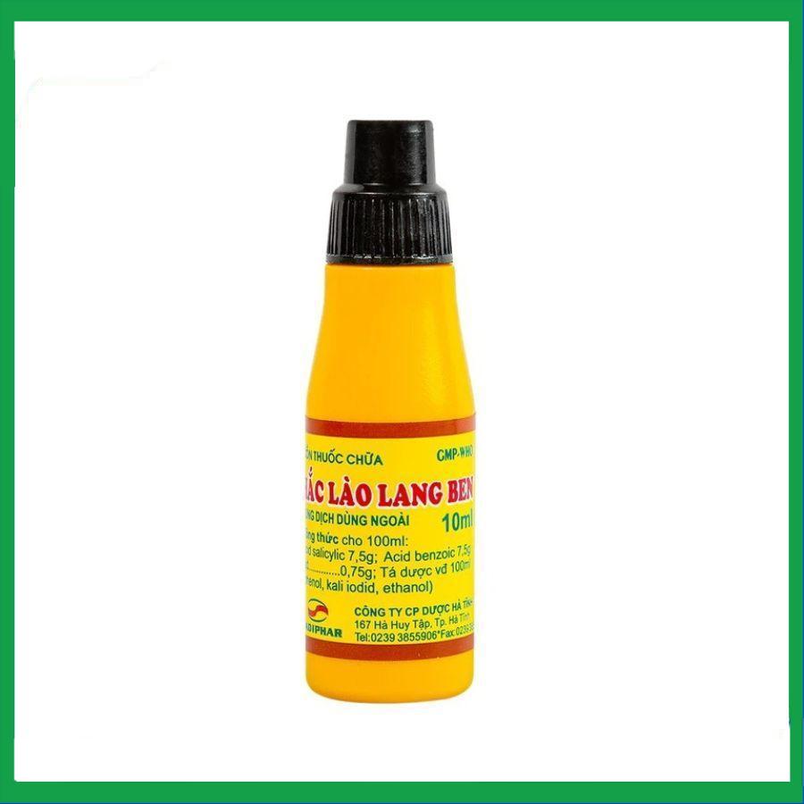 Cồn thuốc chữa Hắc Lào Lang Ben được bào chế dưới dạng cồn thuốc dùng ngoài. Hộp 1 lọ x 10ml.