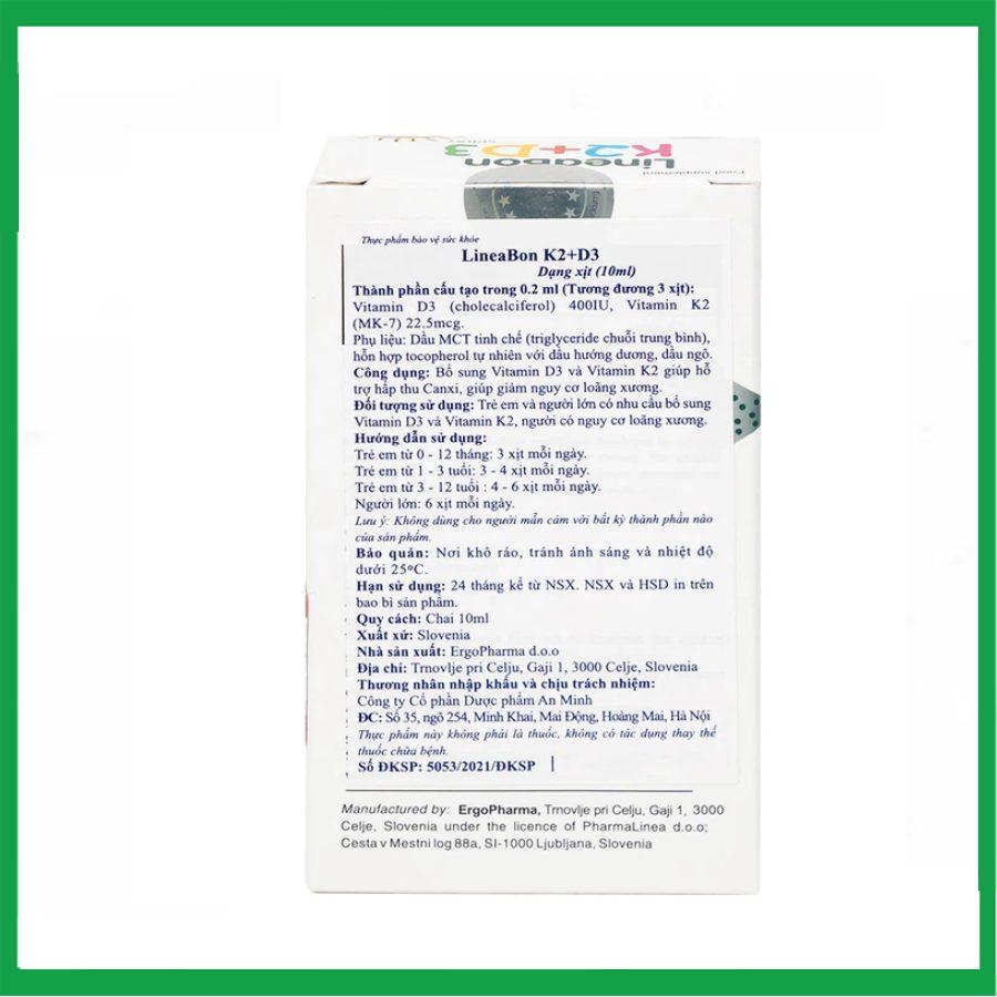 Dung dịch dạng xịt LineaBon K2+D3 bổ sung Vitamin D3 và Vitamin K2, hỗ trợ hấp thu canxi ( Chai 10ml)