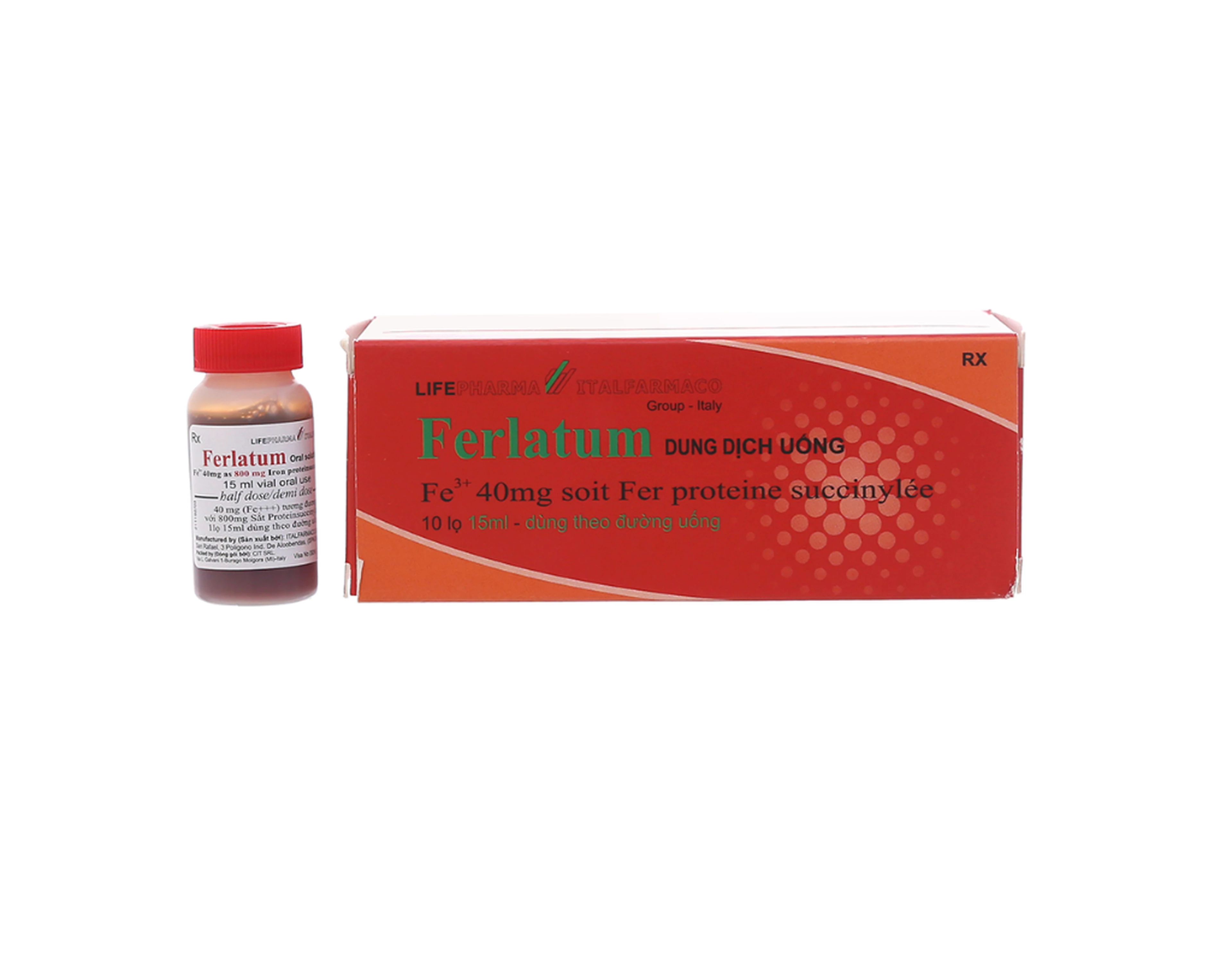 Thuốc Ferlatum 15 ml là dược phẩm của công ty Italfarmaco S.A, chứa thành phần chính sắt, giúp điều trị tình trạng thiếu hụt sắt, thiếu máu do thiếu sắt, thiếu sắt thứ phát ở người trưởng thành trong các trường hợp mất máu mạn tính, phụ nữ mang thai và cho con bú.