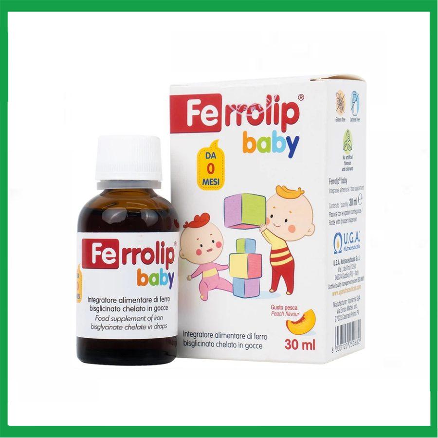 Ferrolip Baby là thực phẩm bổ sung có chứa sắt amin - sắt bisglycinate thế hệ mới làm tăng khả năng dung nạp của cơ thể và đảm bảo khả dụng sinh học cao của khoáng chất. Sản phẩm được pha chế dưới dạng giọt có hương đào thơm ngon để đảm bảo trẻ có thể hấp thụ chất bổ sung.