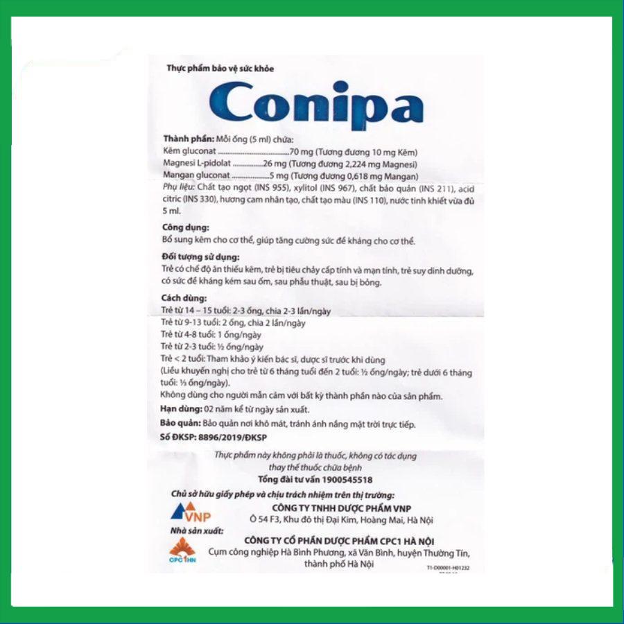 Dung dịch Conipa bổ sung kẽm cho cơ thể, giúp tăng cường sức đề kháng cho cơ thể.