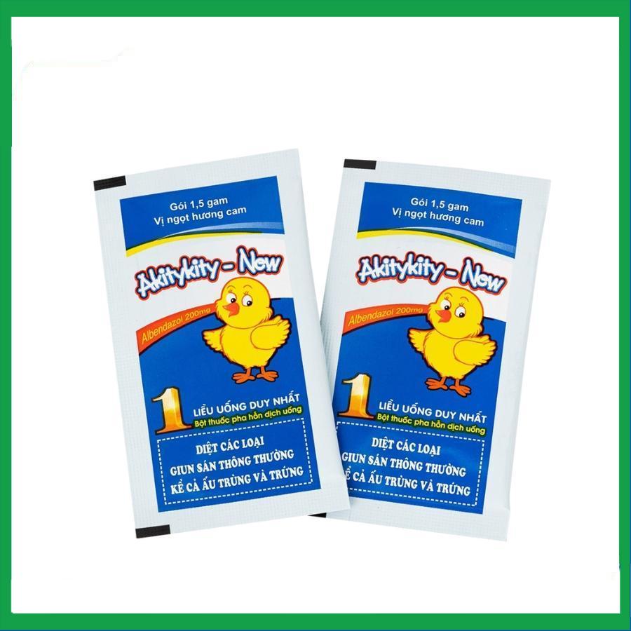 Bột thuốc pha hỗn dịch uống Akitykity – New diệt các loại giun sán thông thường kể cả ấu trùng và trứng. Điều trị nhiễm một loại hoặc nhiều loại ký sinh trùng đường ruột như giun đũa, giun kim, giun móc, giun mỏ, giun tóc, giun lươn, sản hạt dưa (Hymenolepis nana), sán lợn (Toenia solium), sán bò (T. saginata), sản lá gan loại Opisthorchis viverrinivà O.sinensis.