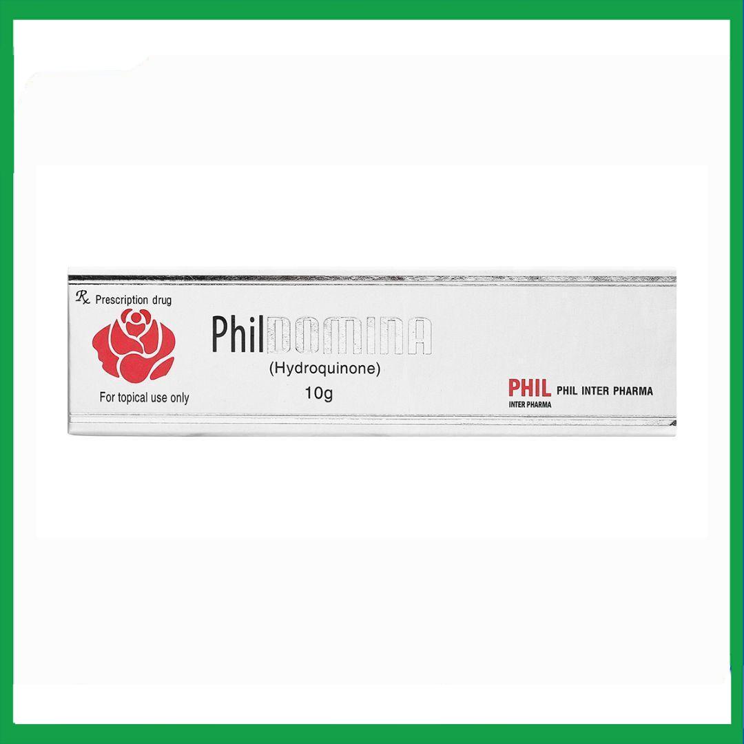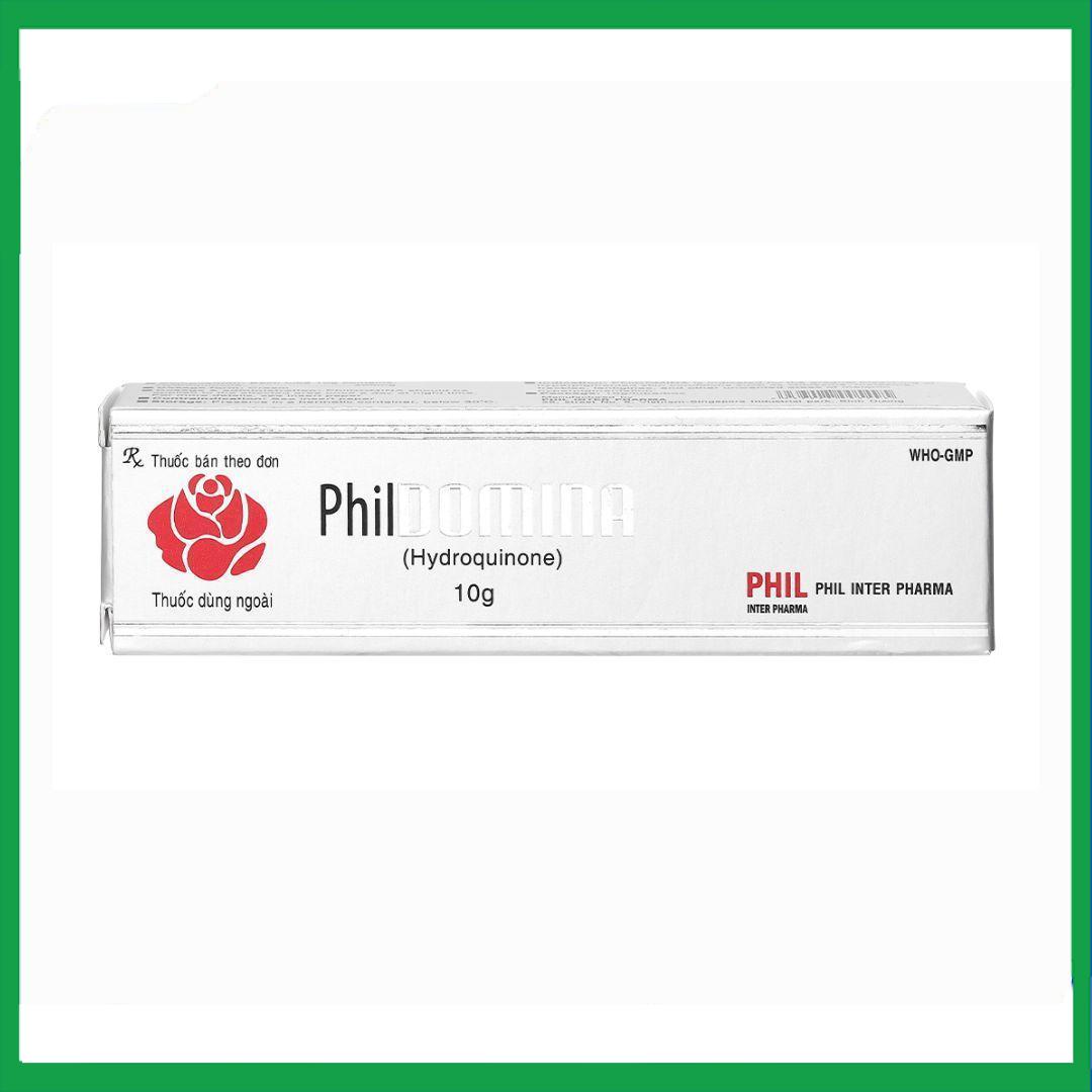 Phil Domina 10G của Công ty TNHH Phil Inter Pharma, thành phần chính Hydroquinone, là thuốc dùng để tẩy trắng từ từ trong các trường hợp tăng sắc tố da.
