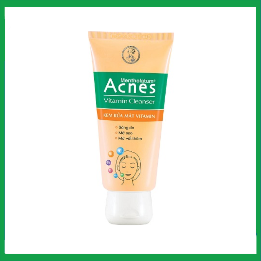 - Kem rửa mặt Acnes Vitamin Cleanser kết hợp các vitamin cần thiết cho làn da như vitamin E, C, A, B3, B5, B6 đặc biệt thích hợp cho việc chăm sóc và cải thiện làn da sau mụn.