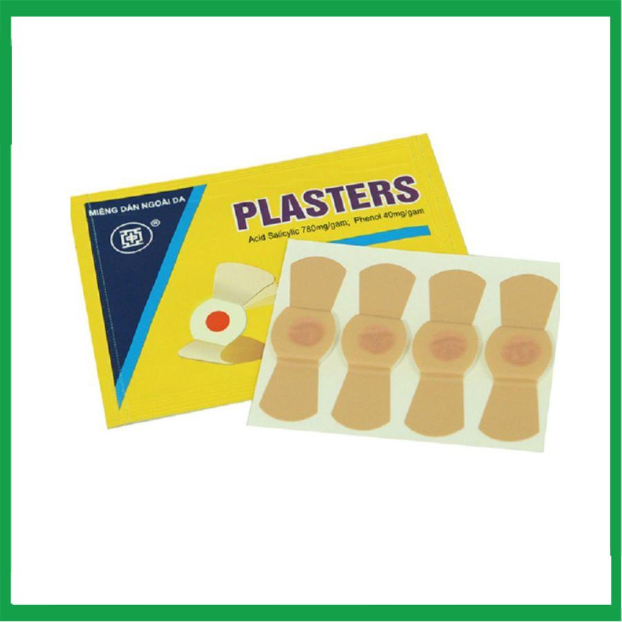 Miếng dán ngoài da Plaster miếng dán mụn cơm, mụn cóc Hộp 5 túi x 4 miếng của công ty Dược phẩm Minh An giúp loại bỏ mụn cóc, mụn cơm, mắt cá chân, vết chai sần trên da.
