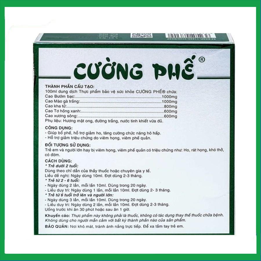Cường Phế giúp bổ phế, hỗ trợ giảm ho, tăng cường chức năng hô hấp. Giảm nguy cơ viêm đường hô hấp khi thời tiết thay đổi. Hỗ trợ giảm các triệu chứng của viêm phế quản như: ho, rát họng, khò khè, khó thở, có đờm và dịch tiết đường hô hấp.