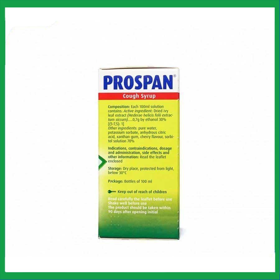 Siro ho Prospan là sản phẩm của Engelhard Arzneimittel (Đức), thành phần chính của siro ho là cao khô lá thường xuân (Hederae helicis folii extractum siccum), là thuốc tiêu nhầy, chống co thắt và giảm ho.