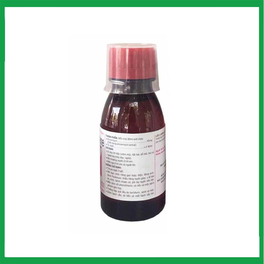 Siro Thémaxtene Hộp 1 chai 90ml của Công ty Cổ phần Dược phẩm Trung ương Vidipha có chứa thành phần chính là Alimemazin, thuộc nhóm thuốc kháng histamin được dùng để điều trị triệu chứng viêm mũi dị ứng và mày đay