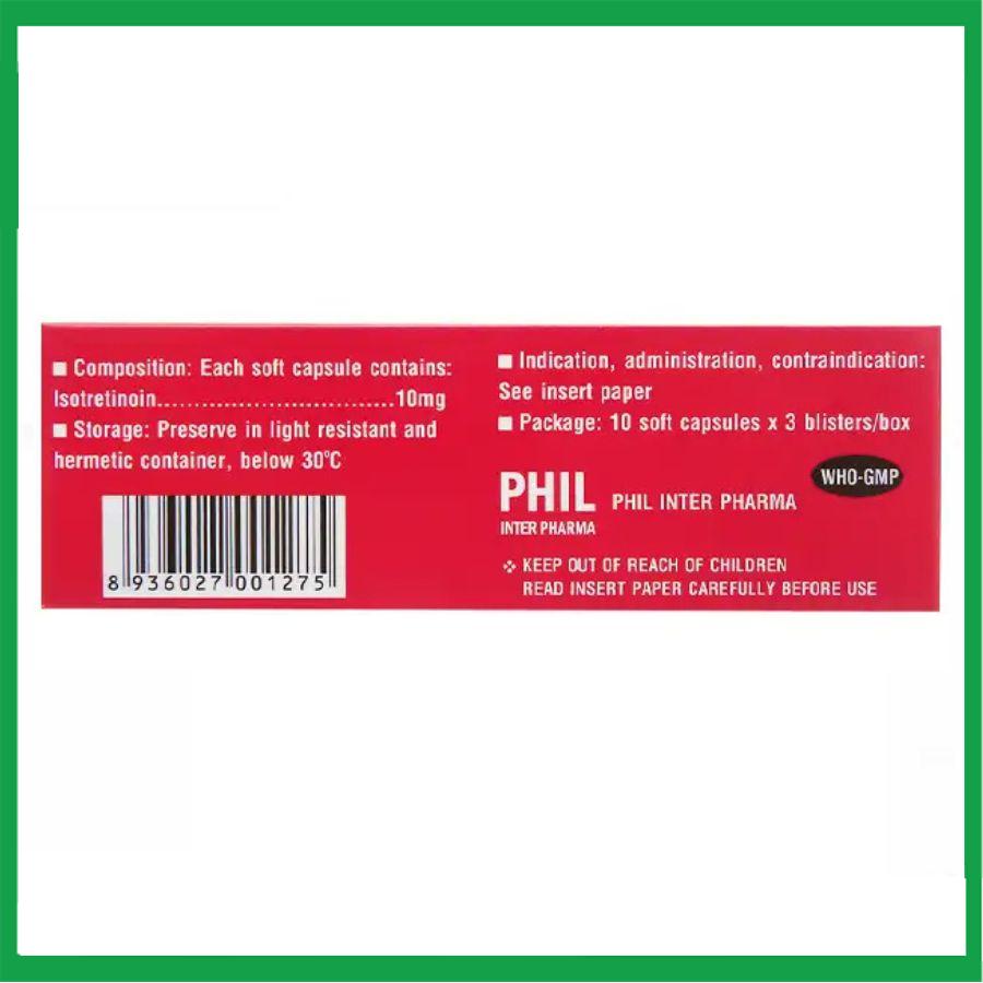 - Do tính chất ưa lipid cao nên isotretionin tăng hấp thu khi dùng thuốc với bữa ăn giàu chất béo. Các nghiên cứu lâm sàng cho thấy không có sự khác biệt về dược động học của isotretinoin trên bệnh nhân bị mụn trứng cá nang sần và những người khỏe mạnh với da bình thường.