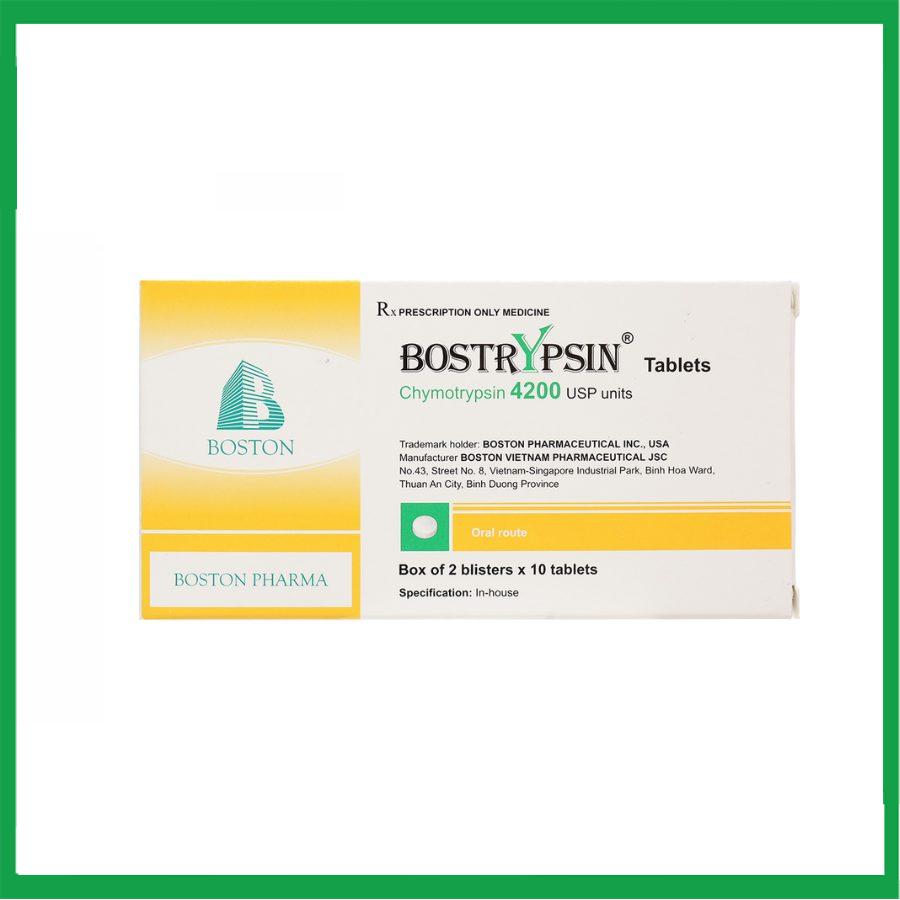 Bostrypsin được sản xuất bởi công ty cổ phần dược phẩm Boston Việt Nam, với thành phần chính chymotrypsin, là thuốc dùng để điều trị phù nề sau chấn thương hoặc sau phẫu thuật