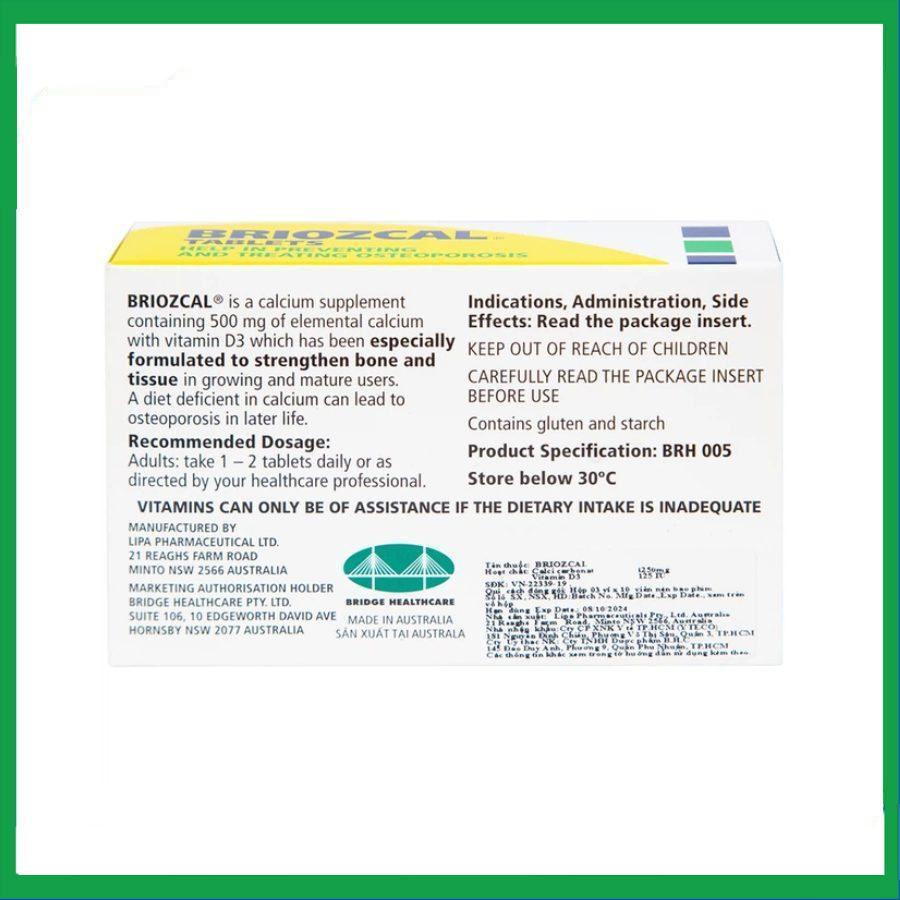 Thuốc Briozcal Bridge Healthcare dự phòng và điều trị thiếu hụt calci, vitamin D3 (3 vỉ x 10 viên)