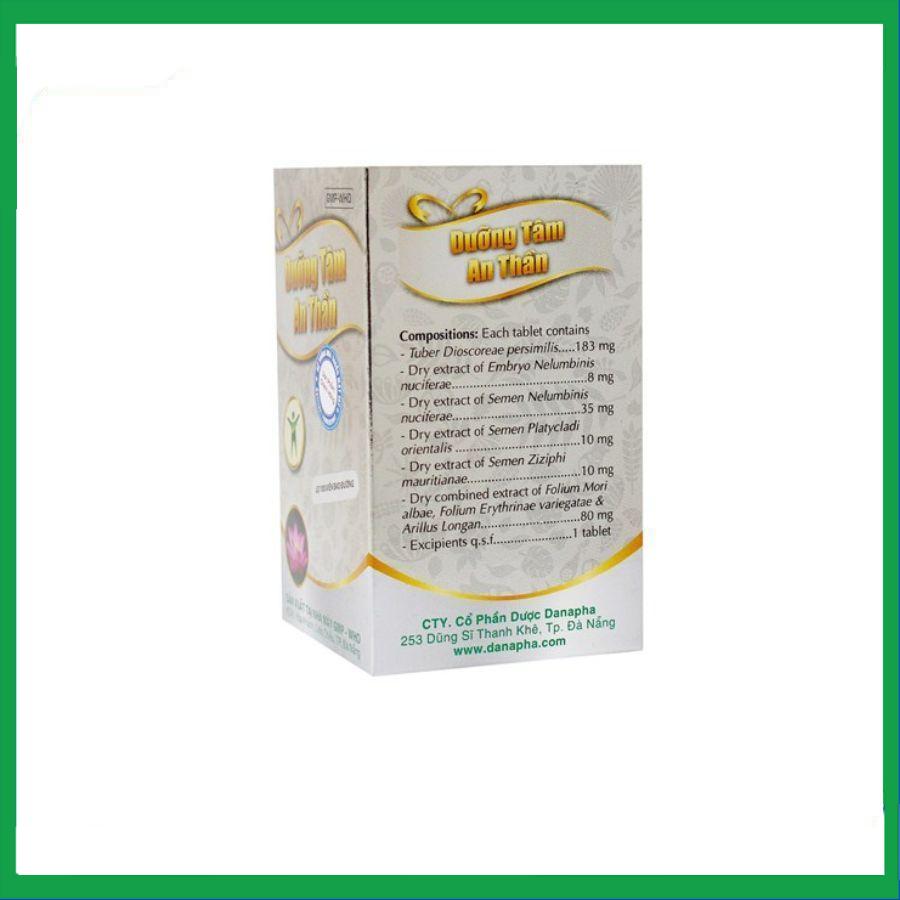 Thuốc dưỡng tâm an thần là sản phẩm của Công ty Cổ phần dược Danapha, với các thành phần thảo dược thiên nhiên là loại thuốc được dùng để để dưỡng tâm, an thần, thông huyết, thanh nhiệt, bổ huyết, bổ tỳ vị, bổ phế thận.