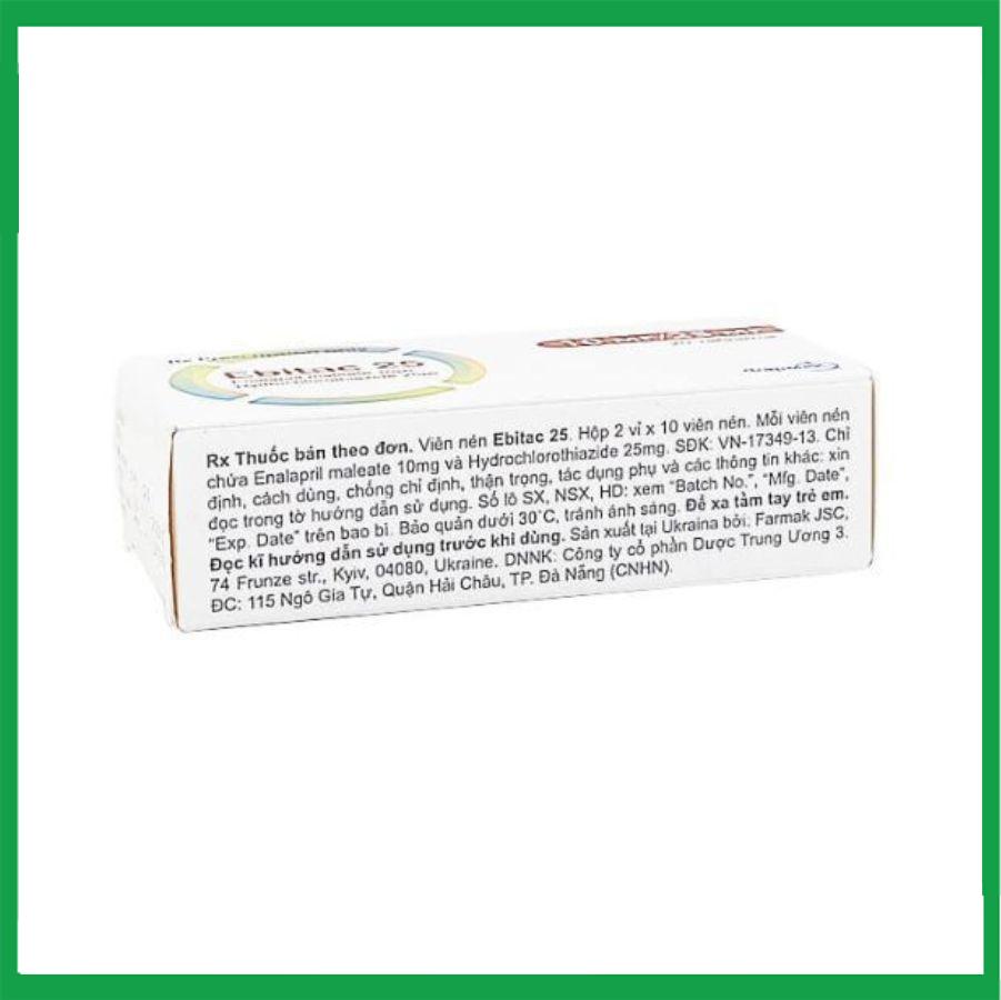 Thuốc Ebitac 25 10mg/25mg Farmak điều trị tăng huyết áp (2 vỉ x 10 viên)