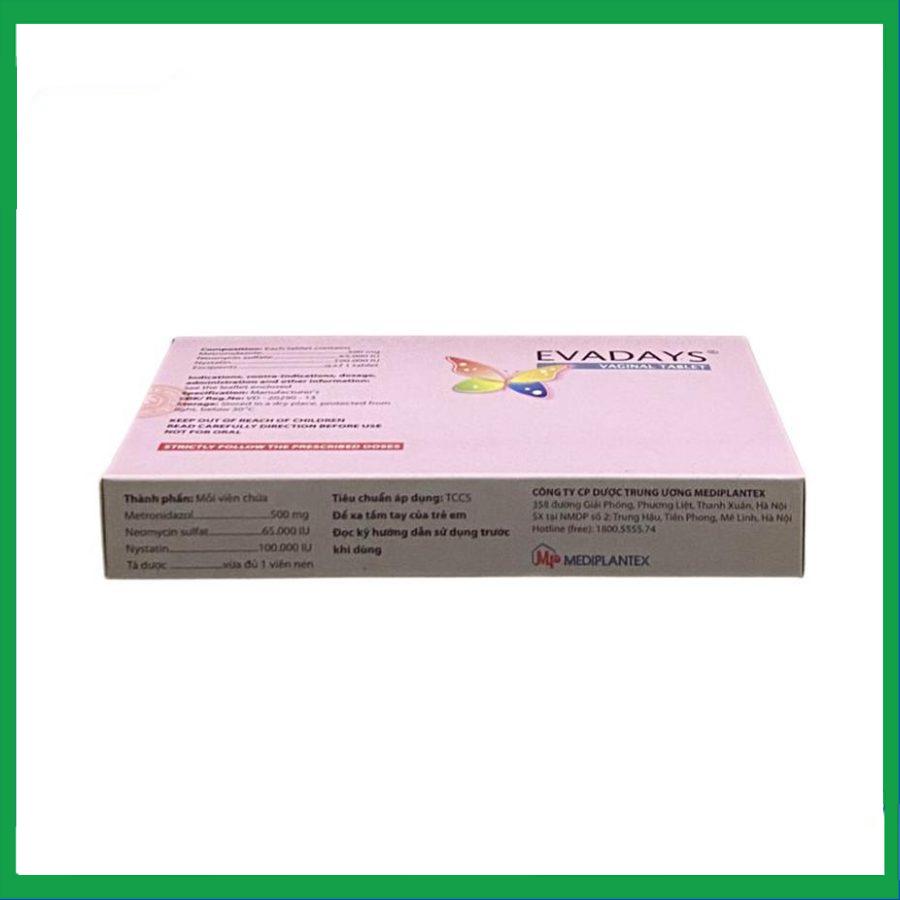 Thuốc Evadays là sản phẩm của Dược Trung ương Mediplantex có thành phần chính Metronidazol, Neomycin sulfat, Nystatin, thuốc dùng để điều trị viêm âm đạo do vi khuẩn, vi nấm nhạy cảm: Gardnerella vaginalis, Trichomonas vaginalis, Candida albicans…, viêm âm đạo do nhiễm đồng thời Trichomonas và nấm men hoặc viêm âm đạo do các tác nhân phối hợp.
