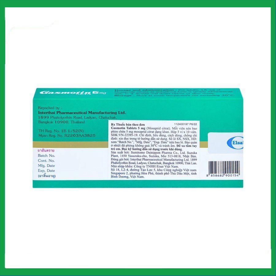- Thuốc Gasmotin 5mg hiện được bán chính hãng ở nhà thuốc, bệnh viện trên toàn quốc, quý vị có thể mua tại: Nhà Thuốc Thành Hương, Hotline: 0986333646 – . Địa chỉ: Số 159, ngõ 503, đường Ninh Hiệp, thôn 2, Xã Phù Đổng, Hà Nội (Bản đồ hướng dẫn)