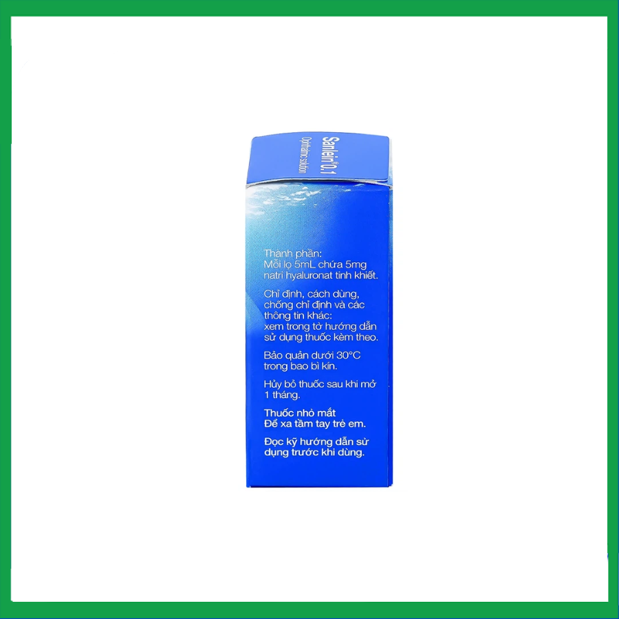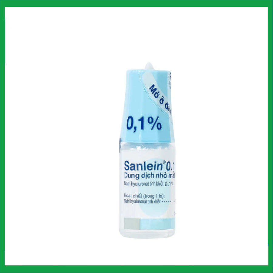 Sanlein 0.1 là dung dịch nhỏ mắt chứa natri hyaluronate tinh khiết, do Santen Pharmaceutical Co., Ltd. triển khai nhằm mục đích để điều trị thương tổn biểu mô kết – giác mạc. Natri hyaluronate là một chất sinh học, trong các nghiên cứu tiền lâm sàng cho thấy có tác dụng thúc đẩy sự liền sẹo biểu mô giác mạc và có tính chất giữ nước. Chất này hữu dụng về mặt lâm sàng để điều trị thương tổn biểu mô kết – giác mạc liên quan với hội chứng khô mắt hoặc các rối loạn khác.