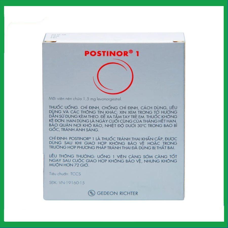 Postinor 1 với thành phần chính levonorgestrel, là thuốc ngừa thai khẩn cấp, có thể được dùng trong vòng 72 giờ sau các cuộc giao hợp không dùng biện pháp tránh thai, hoặc biện pháp tránh thai đã dùng không đạt hiệu quả.