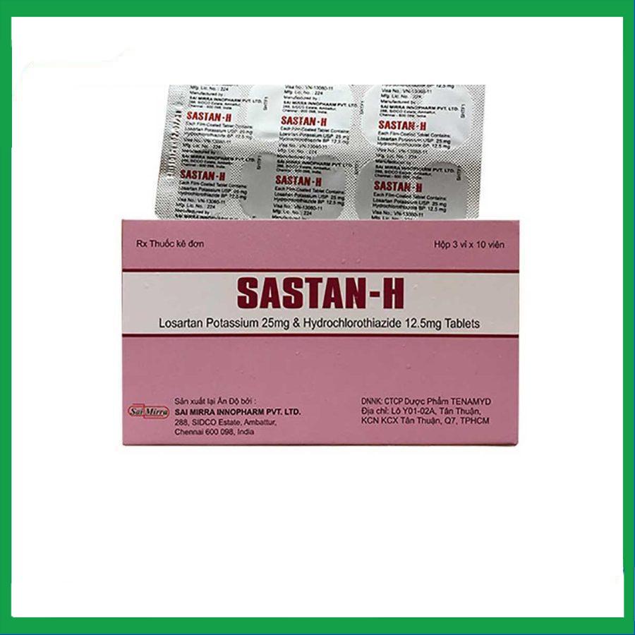 Sastan-H do Công ty Sai Mirra Innopharm Pvt. Ltd., Ấn Độ sản xuất; chứa thành phần chính là Losartan và Hydrochlorothiazide. Sastan-H được dùng để điều trị tăng huyết áp.