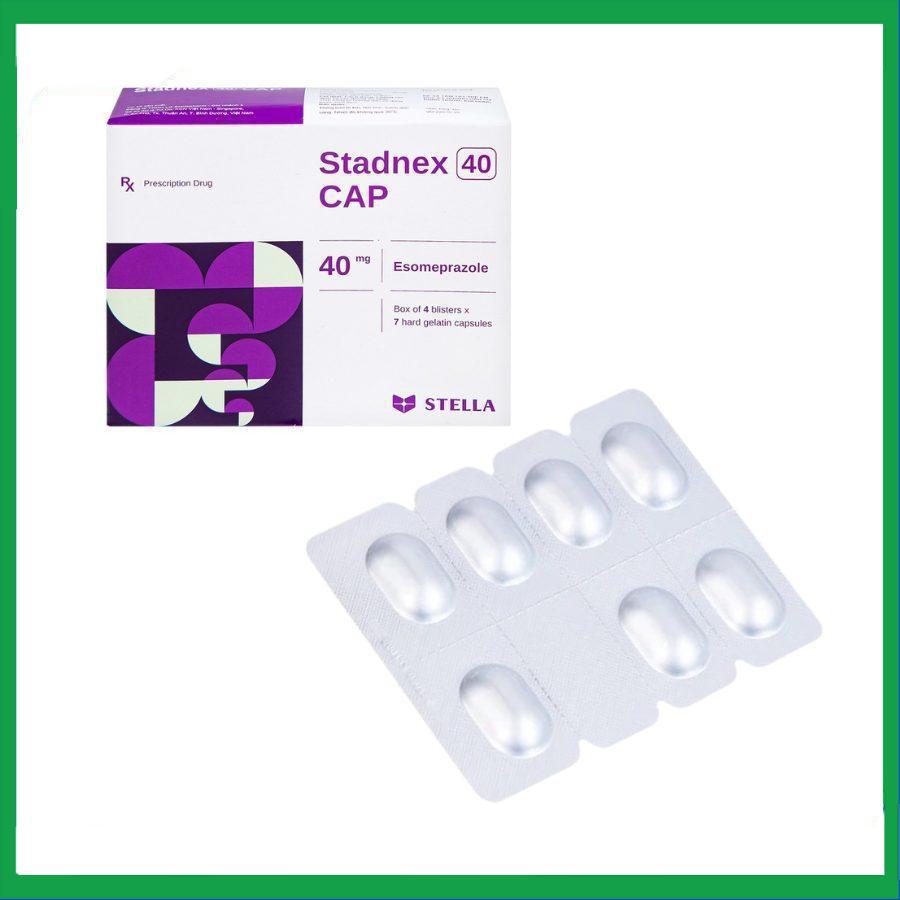 Stadnex 40 CAP thành phần chính là esomeprazol (dưới dạng esomeprazol magnesidihydrat). Thuốc dùng để điều trị bệnh trào ngược dạ dày – thực quản (GERD), chữa lành loét tá tràng do nhiễm Helicobacter pylori và phòng ngừa tái phát loét dạ dày tá tràng, điều trị hội chứng Zollinger – Ellison.
