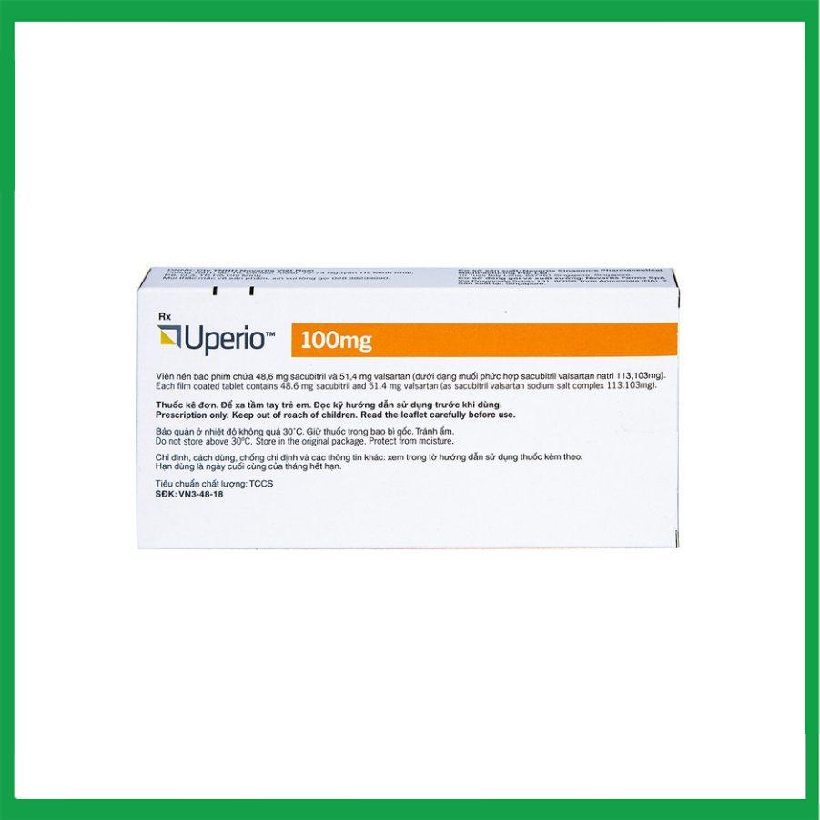 Thuốc Uperio 100 mg là sản phẩm của Công ty Novartis Singapore Pharmaceutical Manufacturing Pte.Ltd., thành phần chính bao gồm sacubitril và valsartan. Thuốc dùng để điều trị suy tim có triệu chứng ở bệnh nhân có rối loạn chức năng tâm thu.