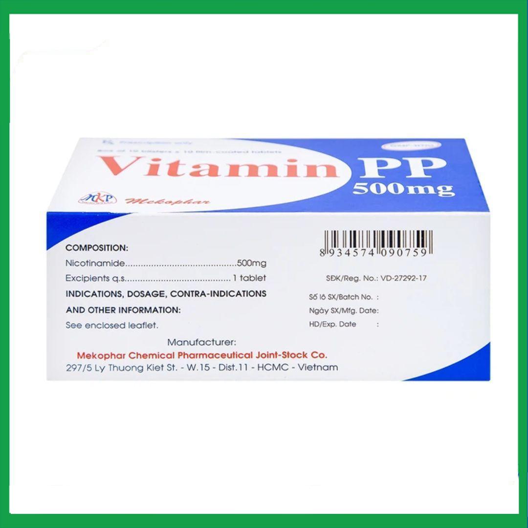 Thuốc Vitamin PP 500mg được sản xuất bởi Công ty Cổ phần Hóa - dược phẩm Mekophar, có thành phần chính là nicotinamid, được chỉ định dùng trong trường hợp điều trị bệnh pellagra.