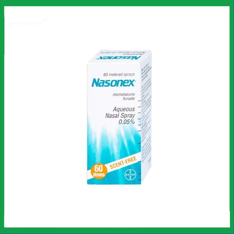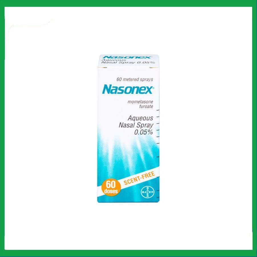 Thuốc xịt mũi Nasonex 0.05% là bình xịt định liều chứa hỗn dịch mometason furoat. Mỗi nhát xịt bơm định liều Nasonex Aqueous Nasal Spray giải phóng khoảng 100mg hỗn dịch mometason furoat, chứa mometason furoat monohydrat tương đương 50 mcg mometason furoat. Sản phẩm có công dụng điều trị triệu chứng viêm mũi dị ứng, viêm xoang cấp, polyp mũi.