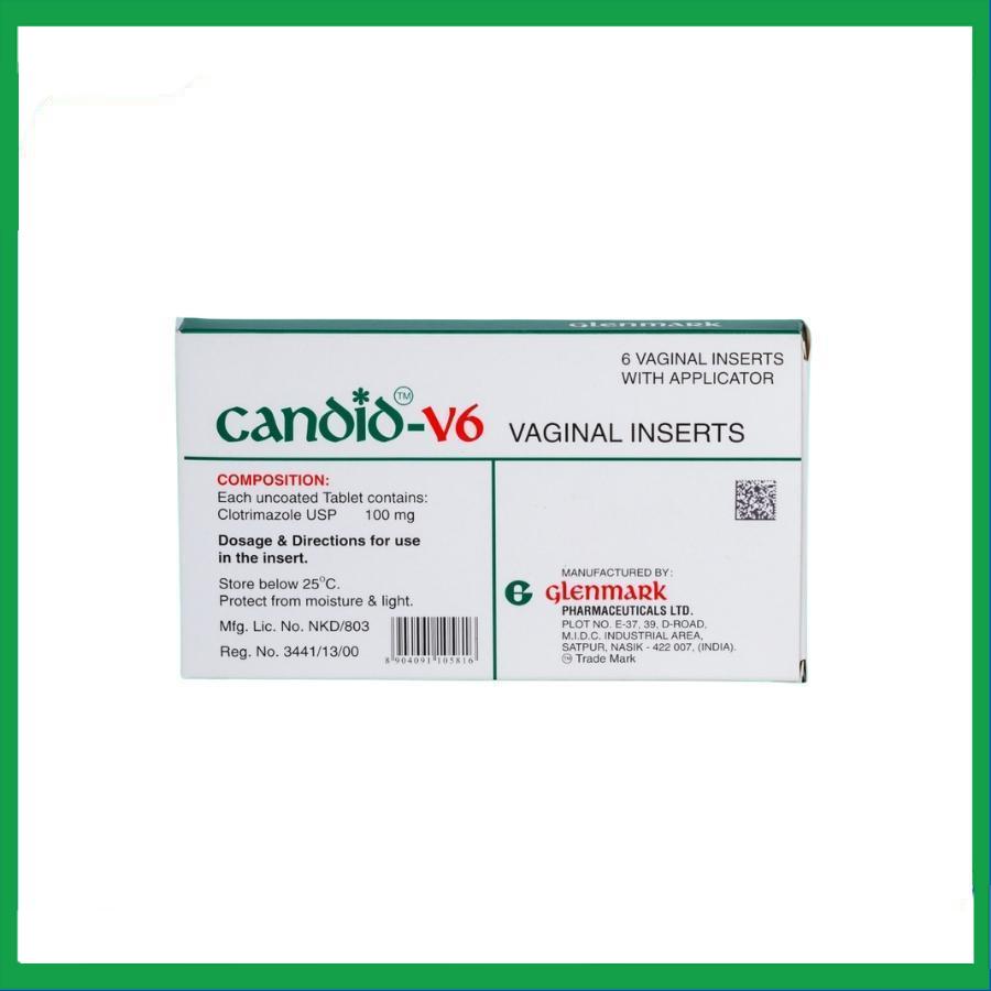 Thuốc Candid V6 được sản xuất bởi công ty Glenmark Pharmaceuticals Ltd., thành phần chính là Clotrimazol, được chỉ định để điều trị nhiễm Candida âm hộ - âm đạo.