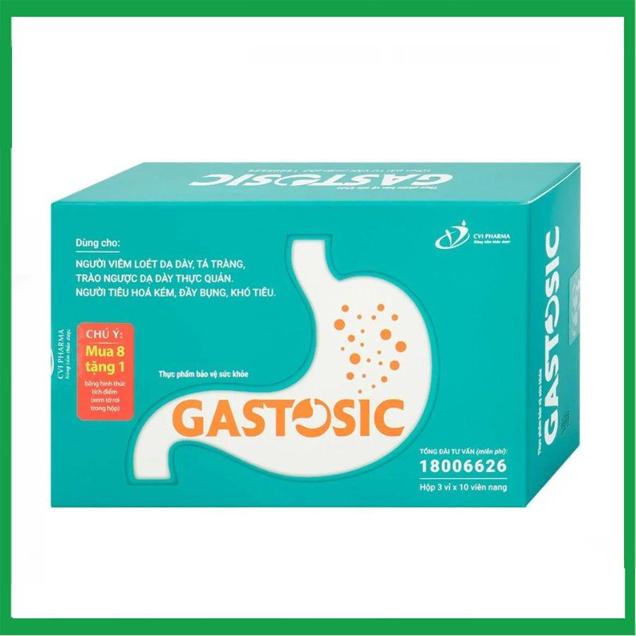 Gastosic giúp tiêu hóa tốt, bảo vệ niêm mạc dạ dày. Hỗ trợ giảm các triệu chứng của viêm loét dạ dày, tá tràng, trào ngược dạ dày thực quản như: Ợ hơi, ợ chua, ợ nóng, đau nóng rát vùng thượng vị.