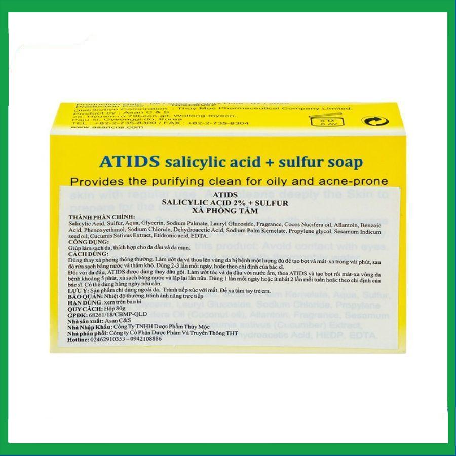 Xà phòng tắm Atids Salicylic Acid 2% + Sulfur làm sạch da, thích hợp cho da dầu, da mụn (80g)