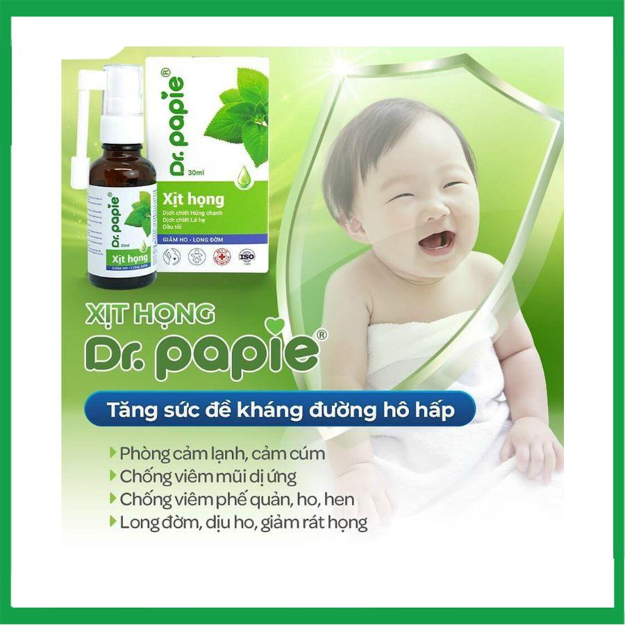 Xit họng húng chanh Dr.Papie hỗ trợ bệnh hô hấp, long đờm, giảm ho, đau họng, amidan